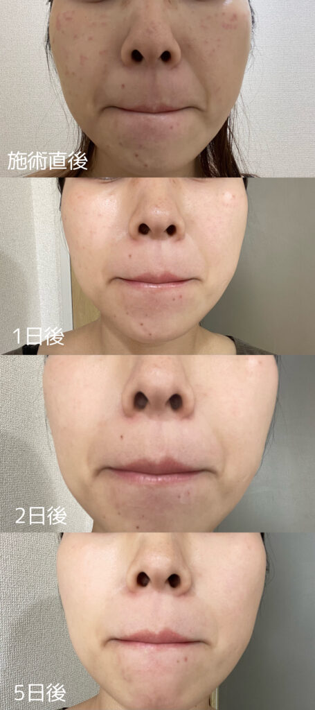 3日目と4日目が週末だったので写真が撮れませんでしたが、施術直後と比べてすごくないですか?!